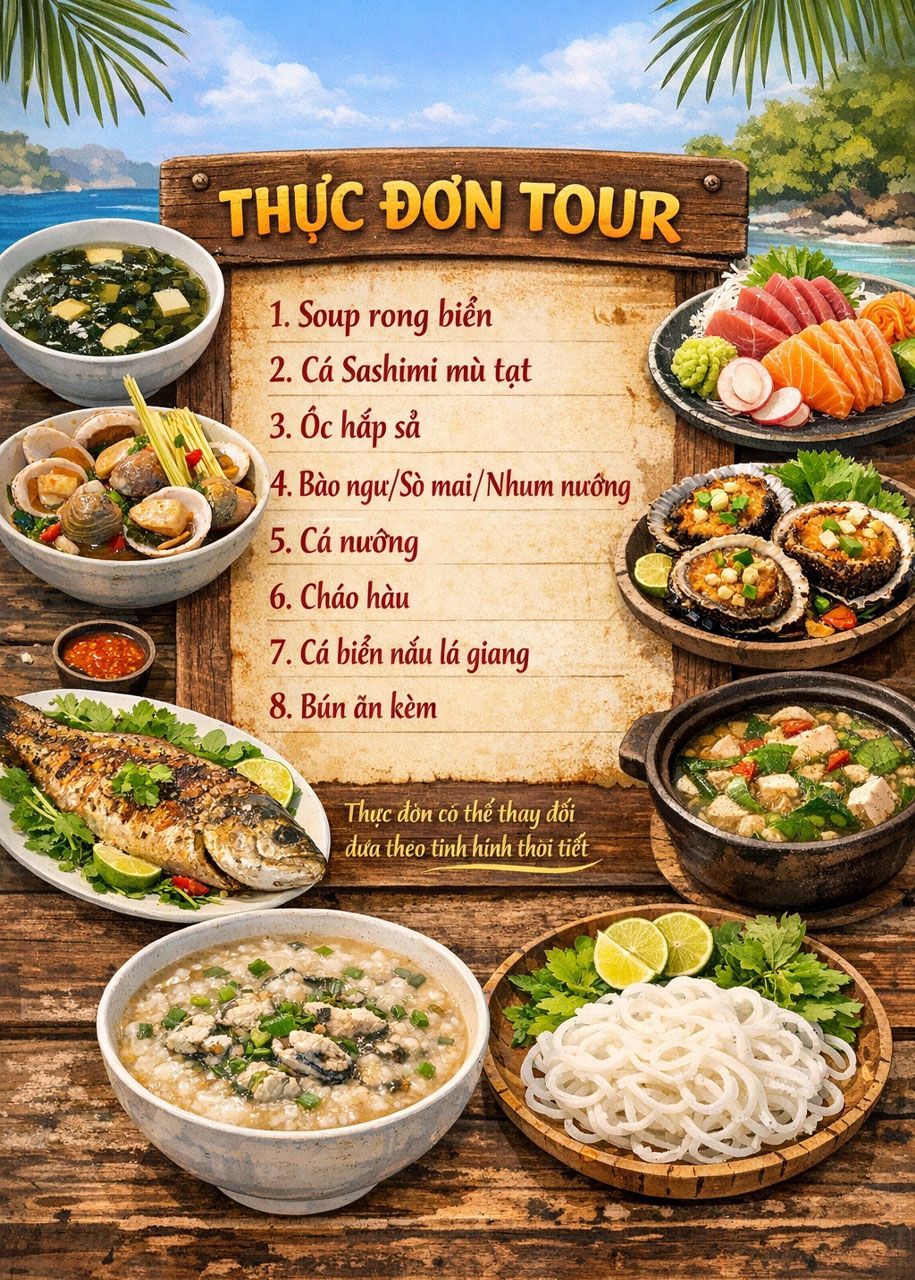 Lịch trình tour và thực đơn có thể thay đổi theo nhu cầu của khách đoàn